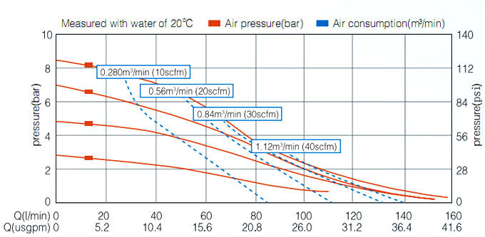 Suction height changes with the different combinations of ball, seat and the diaphragm materials.