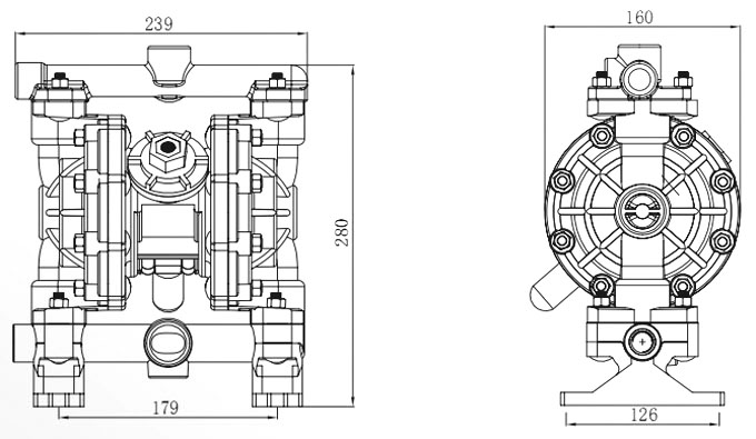Max. Suction Lift Suction height changes with the different combinations of ball, seat and the diaphragm materials. | dry 4m wet 7.6m | Max. particle diamete | 2.5mm | suction and discharge size | 1/2 3/4in /Npt | Air inlet size | 1/4in | Max. flow rate | 57l/min | Max. head | 84m | Max. air inlet pressure | 8.4bar | Max. air consumption | 28scfm(0.672m³/min) | Main body material | PP、Acetal、PVDF |